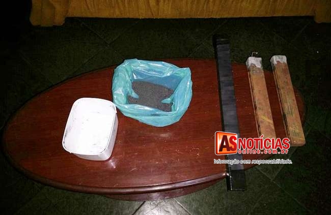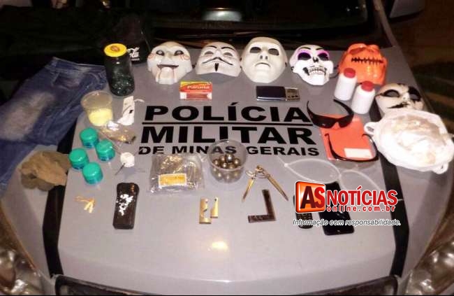 No local foram apreendidas, três dinamites alocadas em metalon, uma porção pesando 1 kg de pólvora, quatro potes de ácido bórico, uma porção de enxofre, um pacote de pregos, onze esferas grandes de aço, 50 bolas de gude, uma balança de precisão, um protetor auricular, uma caixa de fósforos, um compasso, um esquadro, uma calça jeans, uma bolsa tipo viagem, um óculos EPI transparente, um óculos EPI escuro, duas algemas feitas com lacre, uma meia calça, um caderno de anotações.