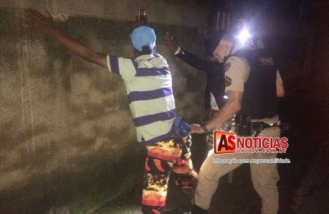Segundo a Policia Militar o preso e suspeito de ter participado de um assalto recente a um idoso na cidade.