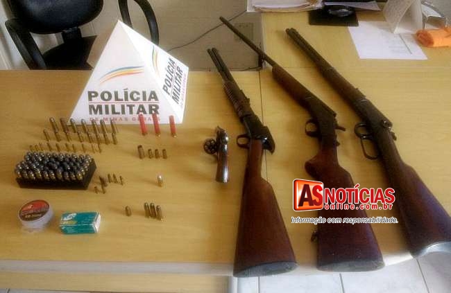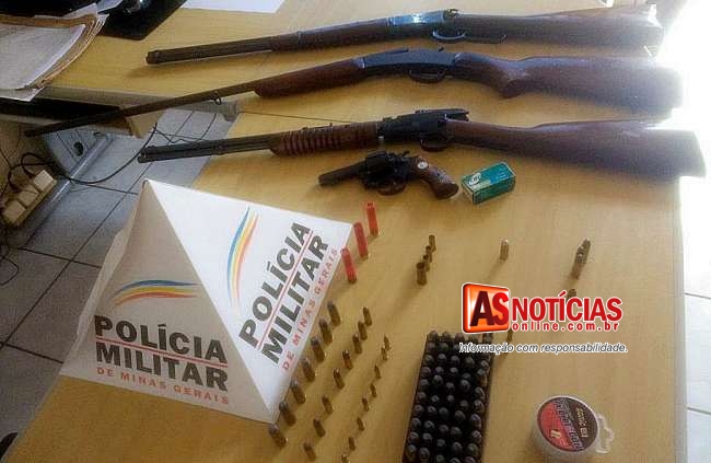 ITABIRA(MG)- Na tarde desta quinta-feira, 1° de março de 2018 a Policia Militar depois de varias denuncias que na localidade rural do Pau de Angu pertencente à Itabira, havia uma grande quantidade de armas de fogo, e que estava se escutando diversos disparos diuturnamente de arma de fogo vindos de uma fazenda de um homem de 65 anos.