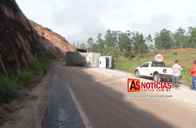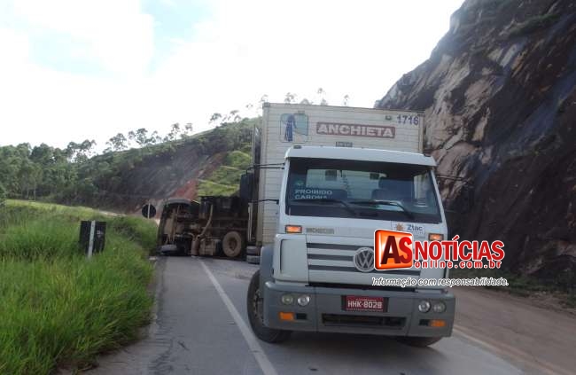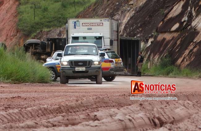 De acordo com as informações da policia Militar o motorista do caminhão VW Volkswagen, cor branca, placa HMQ-2112 de São Domingos do Prata da empresa Anchieta, Geimisson Araújo de Alcântara, 30 anos, que por volta das 7h30min da manhã desta sexta-feira, 9 de março de 2018, relatou que seguia com o veiculo sentido Santa Maria de Itabira, quando no local deparou com a lama, onde ele acabou perdendo o controle da direção e o veiculo acabou tombando na via, interrompendo os dois lados desta.