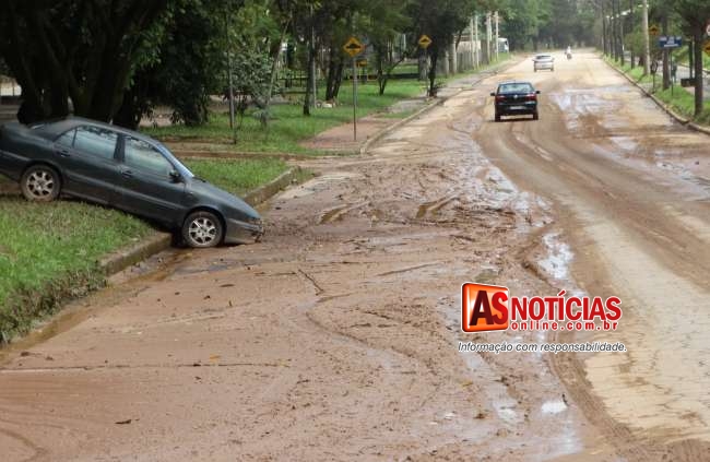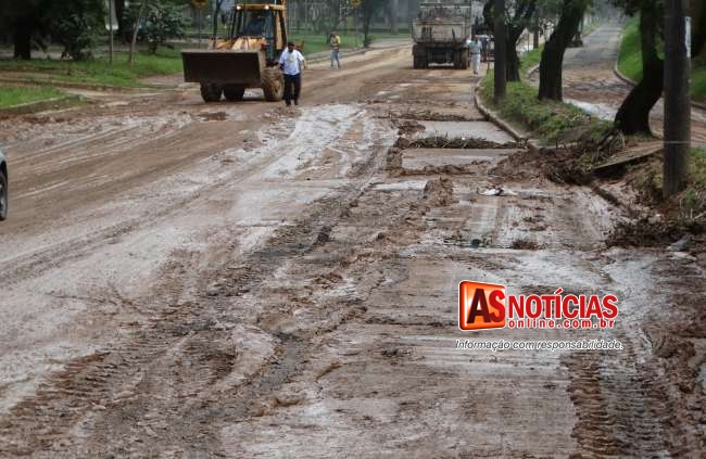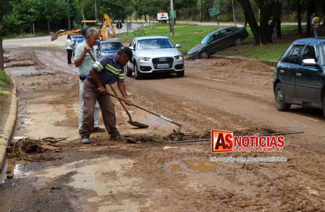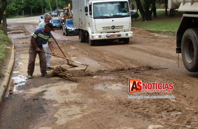 Ao longo de toda a Getúlio Vargas diversos bueiros ficaram cobertos pela sujeira. Pela manhã funcionários, caminhões e máquinas da Prefeitura já estavam trabalhando na limpeza da cidade.