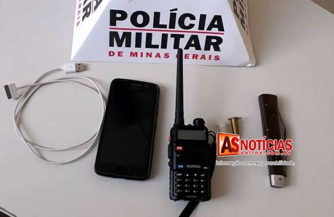 Em buscas feitas na residência do suspeito foi encontrado, um radio HT sintonizado na frequência da Policia, dois pinos de cocaína, um canivete, um pássaro da fauna silvestre e um aparelho celular de procedência duvidosa, todo material apreendido juntamente ao suspeito foram entregues na Delegacia de Policia Civil no bairro Campestre onde o Delegado de plantão tomaria as providencias cabíveis ao caso.
