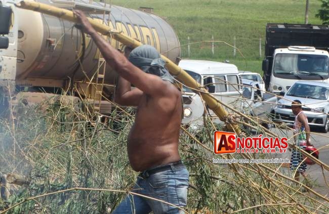 Os manifestantes utilizaram de varas de bambu e pneus, tão logo a rodovia foi fechada a Central de Operações da Policia Militar (COPOM) foi acionada enviou viaturas ao bairro Chapada, onde cerca de 100 moradores entre mulheres, crianças, idosos e jovens manifestavam e interditaram as duas pistas, reivindicando o restabelecimento d’água potável que já durava quase sete dias em alguns pontos dos bairros.