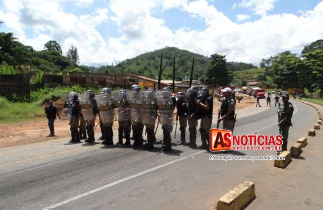 Os Militares advertiram aos populares sobre a conduta do descumprimento da ordem e os crimes que eles estavam cometendo do descumprimento, alguns moradores disseram aos Militares que ali não era o Rio de Janeiro, e que quem manda no local é a população e não a PM. Alguns dos manifestantes demonstravam disposição para reagir de forma violenta caso a Policia intervisse em abrir a via.