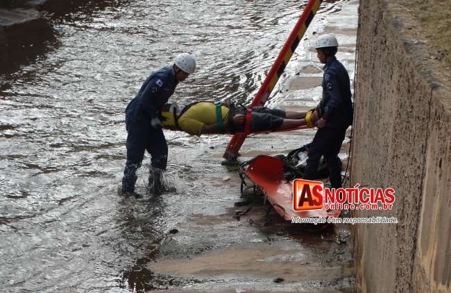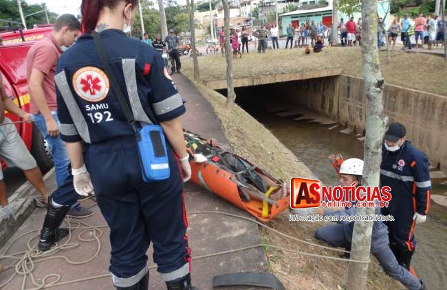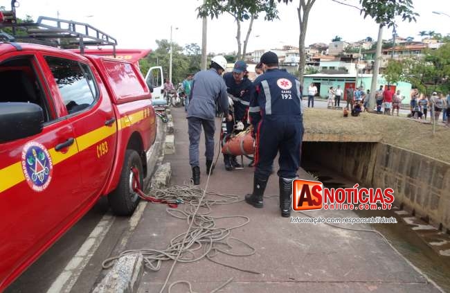 Homem não identificado cai no canal do Praia e é socorrido para o pronto-socorro de Itabira