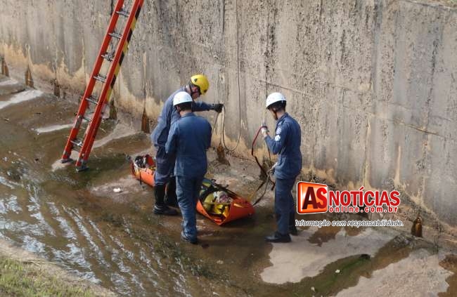 ITABIRA(MG)- Por volta de 15h deste sábado, 24 de marco de 2018, Militares do 4° Pelotão do Corpo de Bombeiros de Itabira foram solicitados a comparecer no canal da Avenida Cristina Gazire na Vila Santa Isabel, próximo do campo do Grêmio para socorrer um homem que havia caído dentro do canal e se encontrava desacordado.