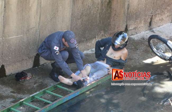 ITABIRA(MG)- Pela manha um popular que caminhava caiu, já a tarde foi à vez de um motoqueiro de 31 anos, que foi socorrido pelos Bombeiros e o SAMU, após cair com sua motocicleta no canal do Praia, na Avenida Li Guerra onde acabou fraturando a perna direita, o acidente aconteceu por volta de 13h50min deste sábado, 31 de março de 2018.