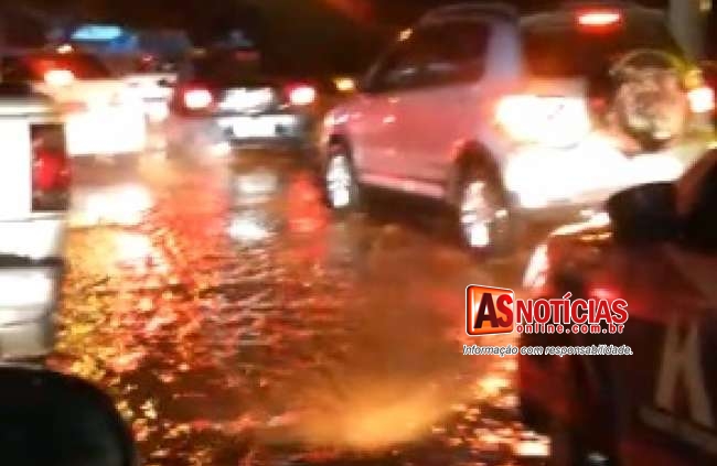Em frente à sede da 17ª Companhia de Polícia Militar Independente, a enxurrada tomou conta da avenida e os motoristas também não arriscaram passar pelo local e usaram a contramão para seguir sentido ao bairro Carneirinhos.