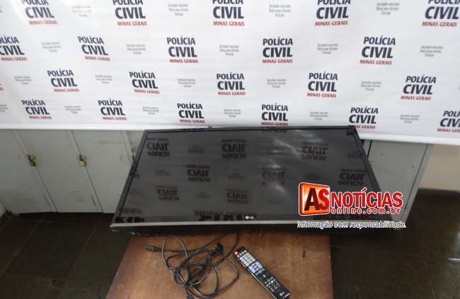 Policiais Civis prenderam homem quando esse tentava fugir com televisor furtado no bairro Bela Vista