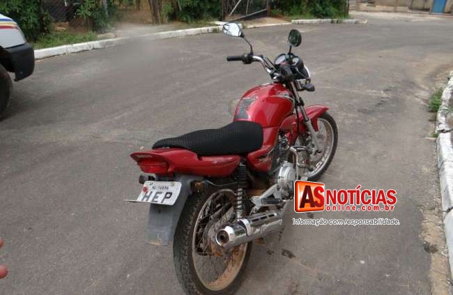 De acordo com as informações os Militares foram ao local e realizaram buscas no local onde conseguiram localizar a motocicleta, em consulta realizada constataram que o veiculo foi furtado na ultima segunda-feira (9) na rua Agua Santa no Centro da cidade.