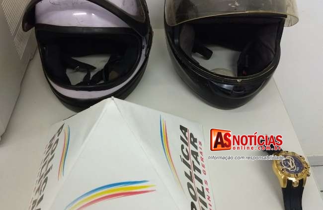 Em verificação ainda constataram que a motocicleta estava com a placa de outro veículo, isso para dificultar a identificação do veiculo e que essa era produto de crime. Enquanto os Militares faziam as verificações acabaram avistando um casal saindo de uma residência com capacetes nas mãos, ao perceber a presença Militar, retornaram novamente para o interior da casa. O homem fugiu do local, pelos fundos das residências, saltando o muro e invadindo casas vizinhas conseguindo assim tomar rumo ignorado, na fuga ele acabou deixando cair para trás um relógio de pulso que foi apreendido.
