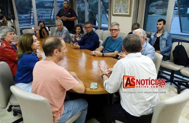 Entre histórias, lembranças e boas risadas, o bate-papo promovido pelo prefeito Ronaldo Magalhães, no final da tarde de hoje (18), em seu gabinete, reuniu os escritores e jornalistas Edmílson Caminha e Humberto Werneck, além do curador da exposição e neto de Carlos Drummond de Andrade (CDA), Pedro Augusto Graña Drummond, para também anunciar alguns detalhes do evento de amanhã.