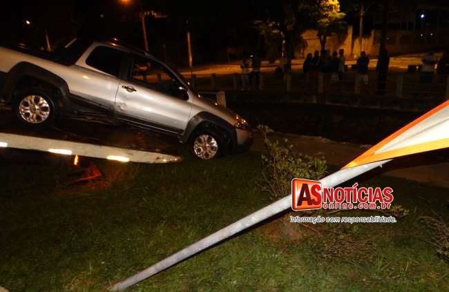 Após ser fechado por veiculo gol condutor perde controle e cai com Fiat Strada em canal no Centro de Itabira