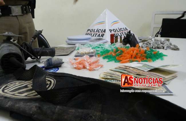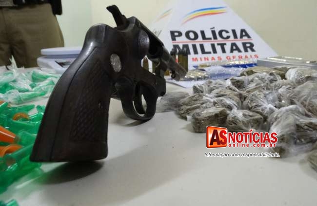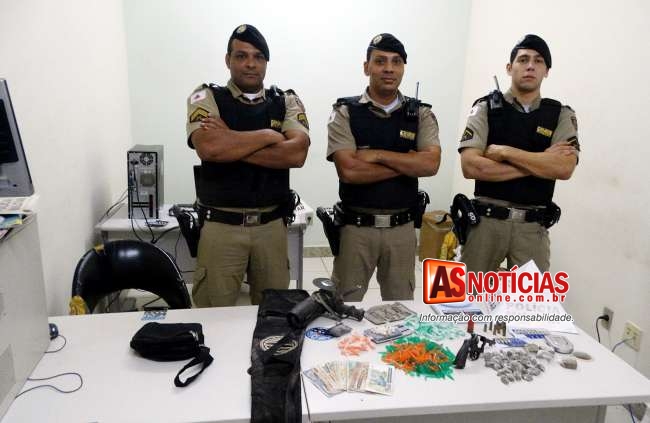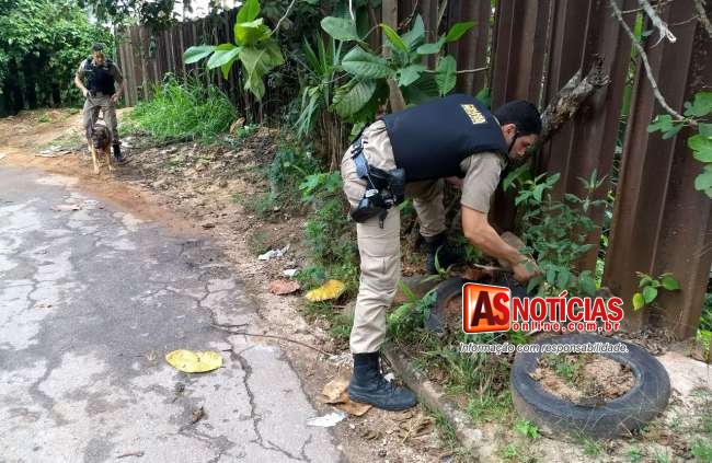 PM em operação antidroga apreende arma, munições e grande quantidade de drogas na rua das Chácaras