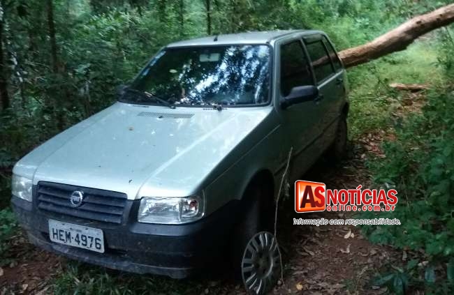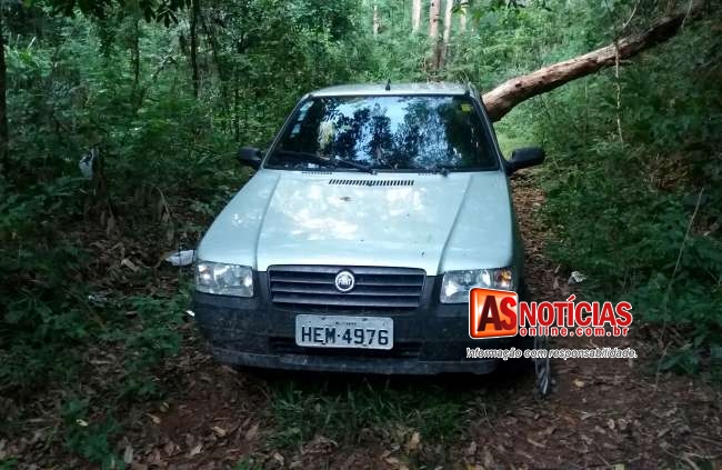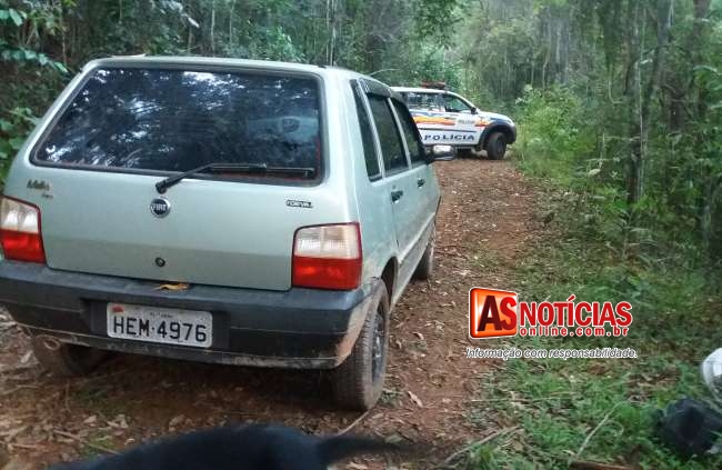 Denuncia anônima ajuda PM a localizar Fiat Uno roubado nas Piabas escondido em mata