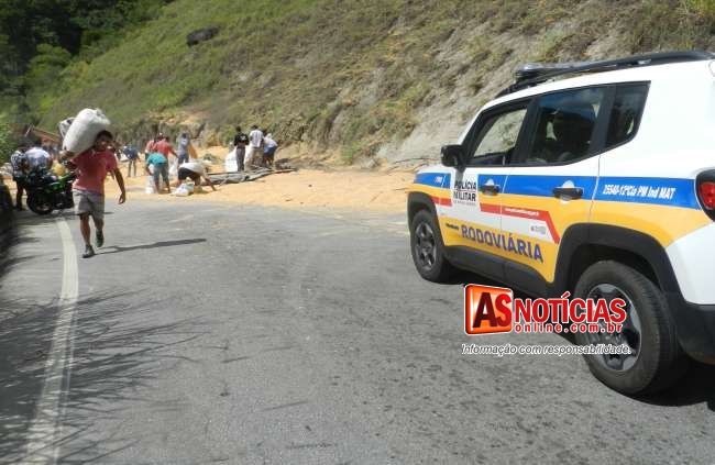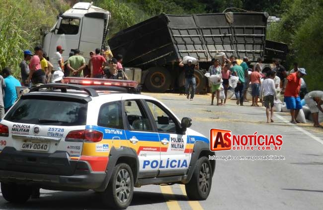 A Policia Rodoviária Estadual (PRV) com os Sargentos Israel e Fernandes, juntamente com uma viatura de área de Nova Era, compareceram no local e mantiveram a ordem, preservando a segurança e integridade de todos, os Militares interromperam o recolhimento da carga que não era segurada, aguardando a chegada do dono dessa, que compareceu e liberou toda carga para os populares no local.