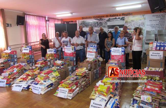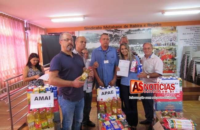 Na manhã desta segunda-feira (07) a diretoria do Sindicato Metabase de Itabira e Região fez a prestação de contas e entrega para entidades beneficentes dos alimentos que foram arrecadados durante a Festa do Trabalhador realizada no dia 1º de maio: 880 quilos de alimentos e 1288 litros de leite - a maior arrecadação já realizada. Natália Duarte, responsável pelo departamento de telemarketing da Apae disse que “os alimentos chegaram em excelente momento. Iniciamos esta semana uma campanha de arrecadação de alimentos e o Sindicato Metabase nos alegrou muito com essa doação”.
