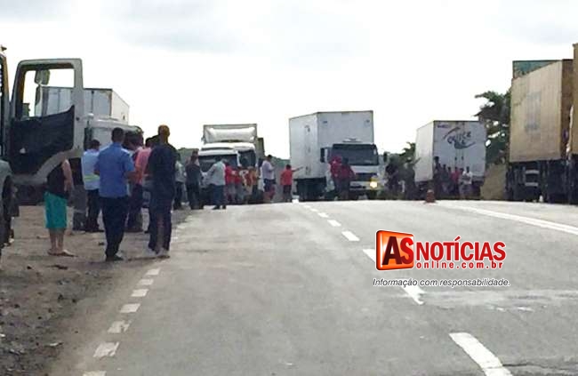 Centenas de caminhoneiros promovem uma manifestação no KM 361, da BR-381, na altura de João Monlevade. Os motoristas impedem a passagem de veículos de carga desde as 23h de ontem (13), segundo a Polícia Rodoviária Federal (PRF).