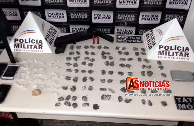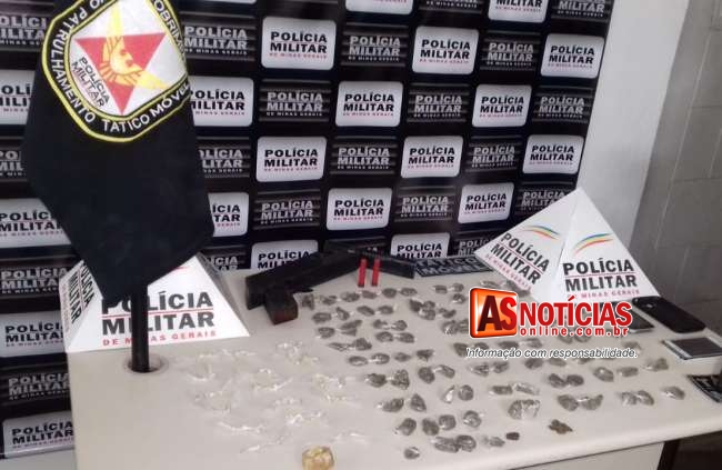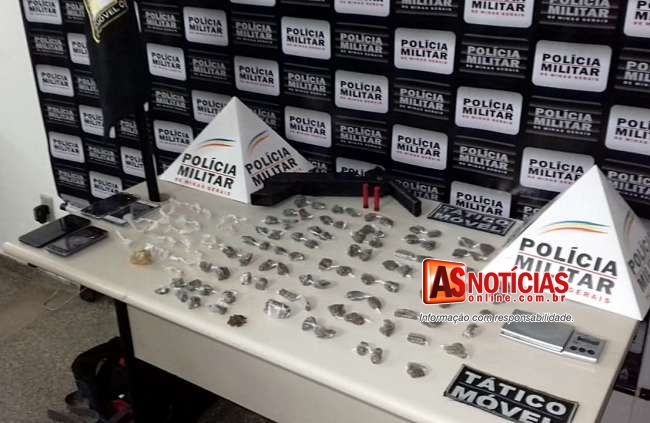 Dois adolescentes de 15 e 16 anos e um homem de 31 anos foram levados para a Delegacia de Polícia Civil de João Monlevade depois de serem flagrados pela Polícia Militar com grande quantidade de drogas.