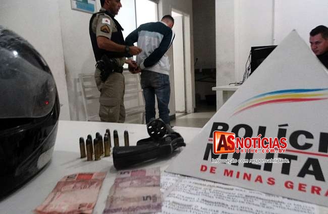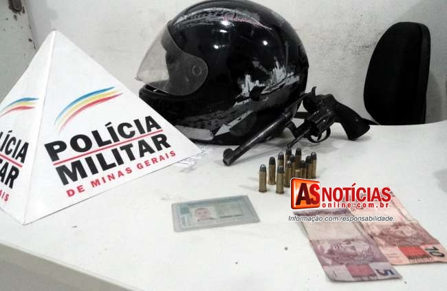 ITABIRA(MG)- Policia Militar prende foragido da justiça do Estado do Espirito Santo com arma de fogo após este tentar roubar um aparelho celular de uma mulher, no bairro Agua Fresca em Itabira.