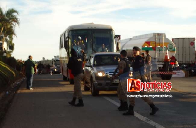 Homens das polícias Rodoviária Federal (PR) e Militar, realizaram uma operação conjunta por volta das 16h30 desta quarta-feira (30) no KM 361, da BR-381, em João Monlevade, onde muitos caminhoneiros estavam parados há 10 dias em greve. Ao todo mais de 40 policiais participaram da operação e não houve resistência parte dos manifestantes.