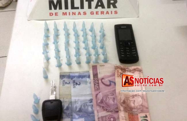 Policia Militar prende um homem e apreende pinos de cocaÃna no bairro Clóvis Alvim I