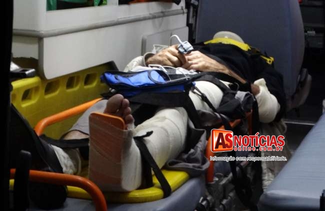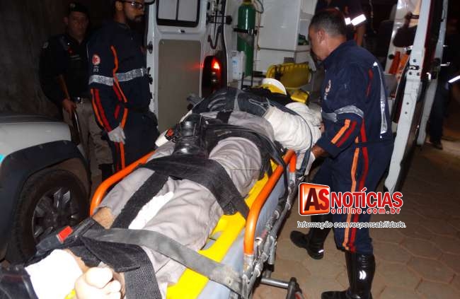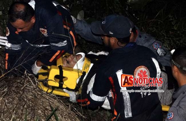 Marcelo do Santos estava caído em um local de difícil acesso, o vigia sentia muitas dores, os Bombeiros juntamente aos socorristas retiraram a vitima do local e a colocaram na ambulância do SAMU onde ele recebeu os primeiros atendimentos, em seguida ele foi levado ao pronto-socorro Municipal com uma fratura no fêmur da perna esquerda.