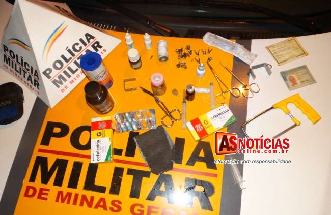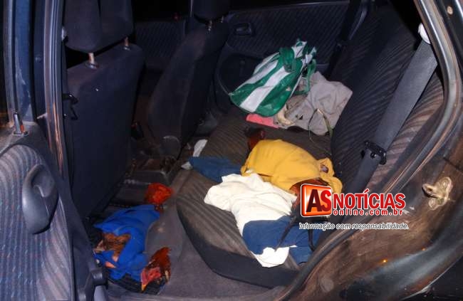 Os Militares então após parar o veiculo iniciaram buscas no interior deste, onde no banco traseiro encontraram três galos índios em sacolas para combate, os Policiais perceberam ainda que os animais estavam com suas esporas mutiladas, encontraram também uma bolsa contendo medicamentos, bico de aço, esporas de aço usadas quando em combate, em uma dessas havia marcas de sangue, demonstrando que a pouco tempo foi utilizada em uma briga, encontraram varias seringas, um arco de serra pequeno usado para cortar as esporas e outros vários materiais.