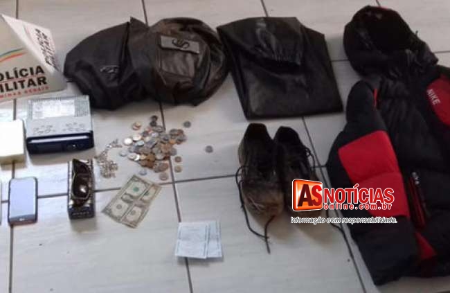 Os Militares foram até a residência do suspeito ao qual se negou a franquear a entrada dos PMs para que realizassem buscas no interior, mediante a isso os Militares foram até o fórum onde conseguiram um mandado de busca e apreensão mediante a Juíza de direito Marcia de Sousa Victoria, para sua residência, onde encontraram dentro do bolso de uma blusa de frio Nike um carregador de pistola 380 com 12 munições intactas, dentro do guarda roupas encontraram uma pequena barra de maconha, celulares, radio de carro, diversos outros itens os Militares suspeitam que todo material seja fruto de drogas por entorpecentes.