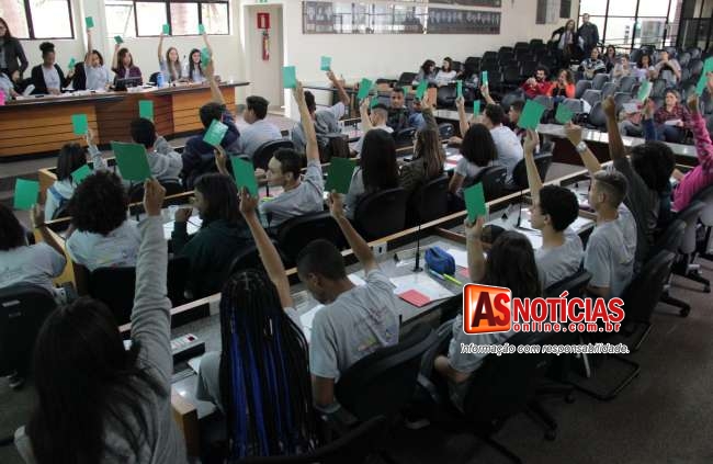 Os alunos do Parlamento Jovem de Itabira aprovaram e priorizaram seis propostas durante uma Plenária Municipal nesta quarta-feira, 20 de junho, que serão encaminhadas à próxima fase do programa. O evento aconteceu na Câmara Municipal e contou com a participação do presidente Neidson Dias Freitas (PP), da delegada especializada em atendimento à mulher, Amanda Machado, dentre outras autoridades.
