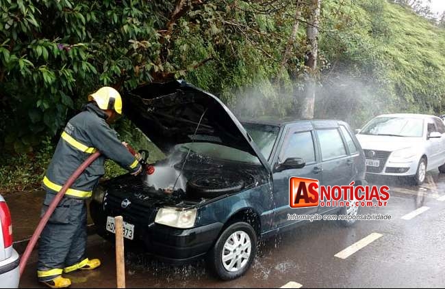 Rapidamente os Militares do Corpo de Bombeiros compareceram ao local, onde já foram de imediato ao combate do incêndio, onde conseguiram apagar as chamas que destruiu completamente o motor do Fiat Uno.