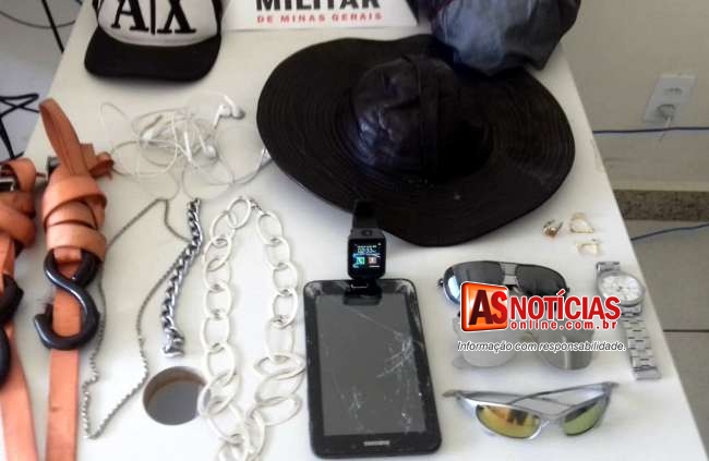 Em consulta feita constataram que o mesmo é suspeito de outros crimes de roubos na região do centro da cidade, onde foi utilizado arma de fogo, por ter sido reconhecido no crime de assalto na noite anterior, ele recebeu voz de prisão todos os materiais encontrados foram apreendidos.