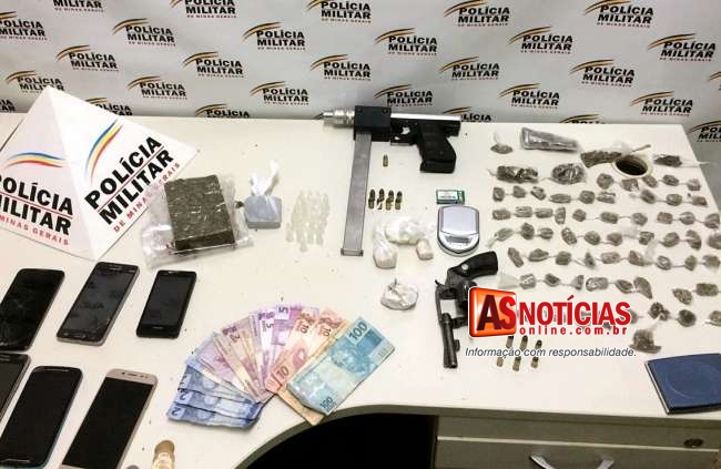 PM de Santa Bárbara desarticula quadrilha de tráfico de drogas e apreende drogas, revólver e submetralhadora no bairro Santa Mônica