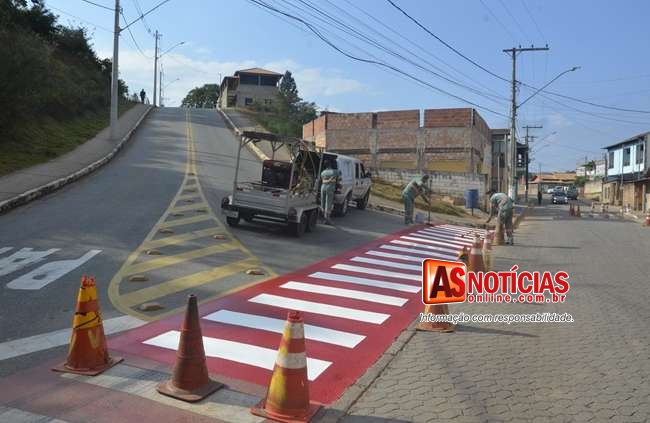 A Prefeitura de São Gonçalo do Rio Abaixo está renovando a sinalização horizontal em vários pontos da região central da cidade. A ação consiste em pinturas de faixas de pedestres e quebra-molas, demarcações diversas com linhas, palavras ou símbolos diretamente na pista.