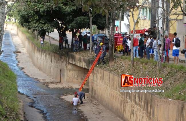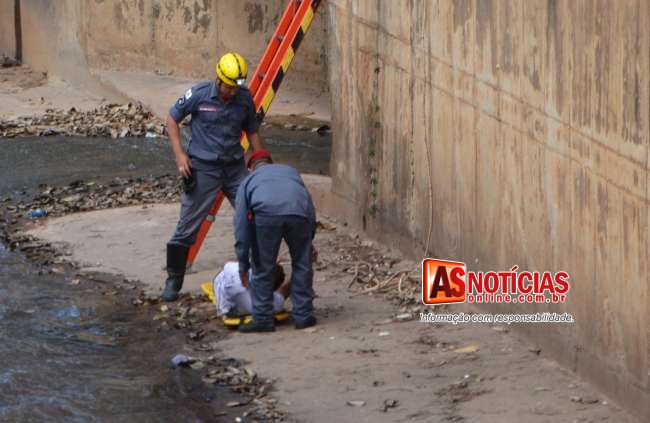 Homem com sintomas de embriagues é socorrido após cair dentro do canal na Avenida Cristina Gazire