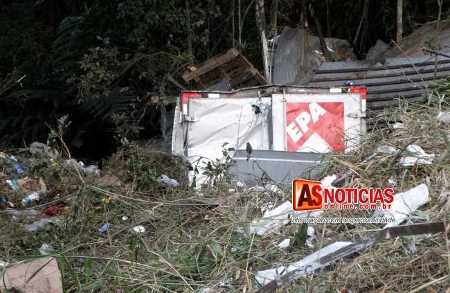 Caminhão do EPA supermercados despenca em ribanceira e motorista morre na BR-381 em São Gonçalo do Rio Abaixo