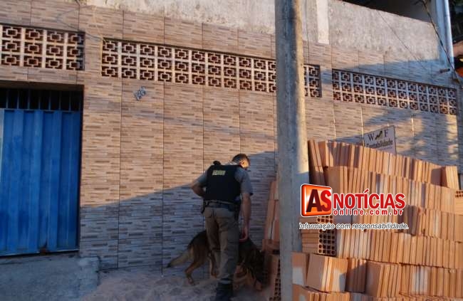 Já por volta de 15h30min, os Militares da inteligência já com os suspeitos identificados, solicitaram apoio de outras viaturas que foram ao local, onde em parlamentação com familiares autorizaram a entrada, um jovem primo de um dos suspeitos C.D. P. F, 20 anos, que não se encontrava na residência, foi preso quando tentou impedir o trabalho dos Militares, por receptação e desacato. Os Militares localizaram no local uma motocicleta Honda CB Twister, cor preta, placa HBI-4755, que estava sendo pintada por um frasco de spray na cor vermelha, a moto também estava com a numeração do chassi raspada, um chassi de outra motocicleta não identificada também rapado e varias peças de motocicletas foram localizadas no local. Utilizando o cão Urano da ROCCA conseguiram localizar 8 buchas de maconha prontas para serem comercializadas.