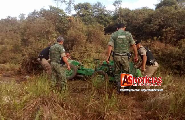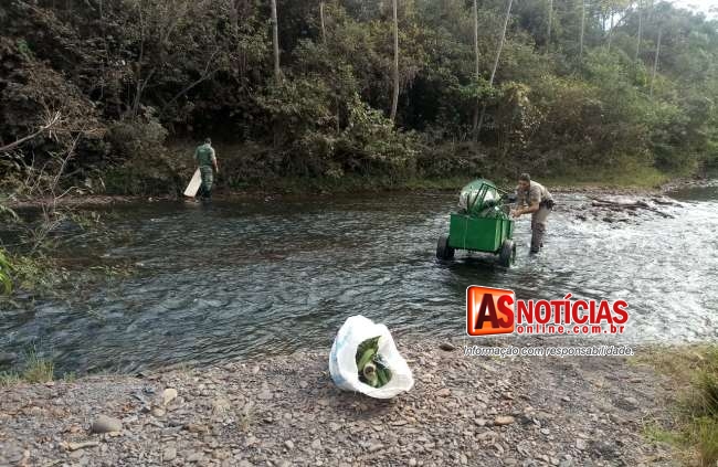 De acordo com as informações os Militares, depois de receber uma denuncia anônima relatando que indivíduos estariam realizando extração mineral no Rio Conceição, localizado próximo à comunidade de São Gonçalo do Rio Acima, as equipes foram para o local e atravessaram o rio indo até uma pequena ilha que se formou, onde depararam com uma estrutura montada de garimpo com barraca, dragas, carpetes, carrinhos, mangotes e bateias, no interior da barraca dois garimpeiros de 34 W.G. S e E.J. P de 38 anos, que dormiam e foram acordados pelos PMs, os garimpeiros disseram que estão trabalhando no local a nove dias, mas que não utilizam substancias nocivas para apurar o ouro, apenas bateias, os Militares localizaram buchas de maconha no local.
