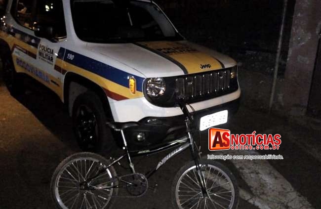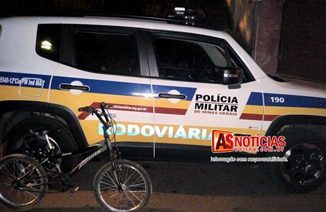 Em conversa com o mesmo esse relatou ter saído da cadeia há 15 dias, e estava à procura de emprego, dando continuidade nas buscas próximo ao pneu do caminhão encontraram uma bicicleta ao qual lhe foi perguntado de quem era, o mesmo alegou ser dele, os Militares insistentemente o perguntaram sobre a procedência da bicicleta, quando o suspeito acabou alegando que estava passando pela Rua José da Silva Braga, em um condomínio no Centro de Santa Maria de Itabira, quando percebeu que um portão estava aberto, entrou na garagem desta residência e pegou a bicicleta.