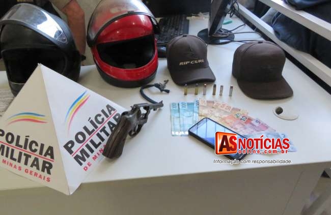 Segundo informações a equipe do Grupo Especializado em Prevenção Motorizada Ostensiva Rápida (GEPMOR) foram os primeiros a chegar exatamente no momento em que os suspeitos subiriam numa motocicleta Honda XRE-300, cor preta, placa PXN-0532 de Belo Horizonte, que no sistema informatizado constava queixa roubo/ furto em datas anteriores, eles receberam ordem dos Militares para que largassem a arma e deitassem no chão, os dois foram apreendidos.