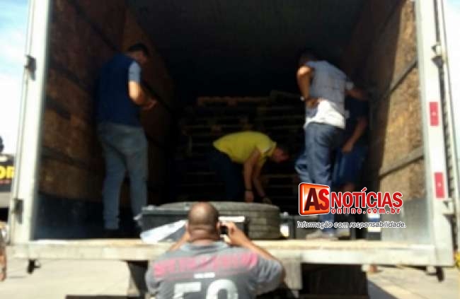 Segundo a PM, havia informações de que um homem, que estava com um caminhão, iria realizar a negociação de baterias furtadas no estacionamento da churrascaria Encantado.