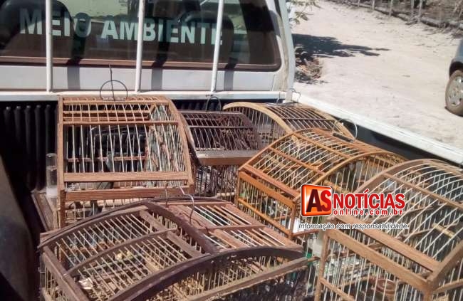 PMs de Meio Ambiente apreendem novamente pássaros e armadilhas na zona rural de Santa Barbara