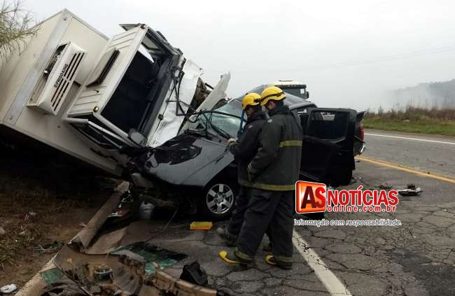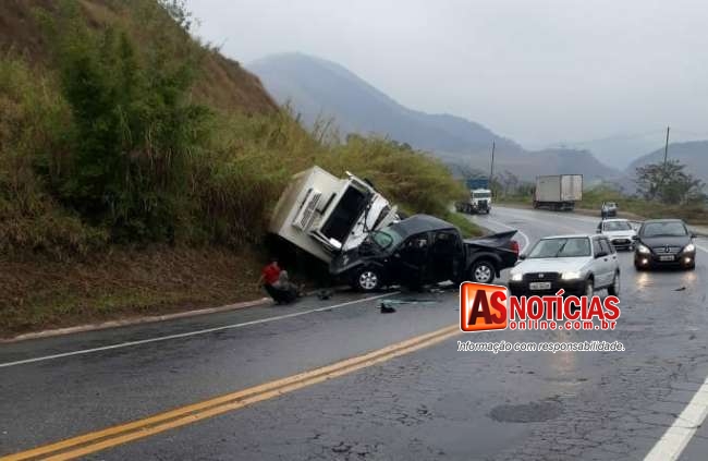 Acidente envolvendo um caminhão e uma caminhonete colidiram frontalmente na BR-381 em Nova Era, uma mulher morreu