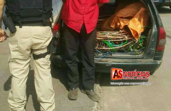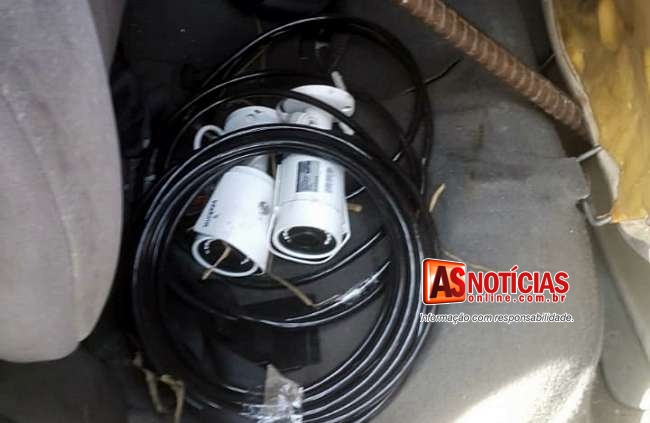 O condutor foi preso em flagrante e levado ao posto de fiscalização da PRF. Durante buscas no carro foram encontradas no porta malas, duas câmeras de segurança, vários cabos de diâmetros diferentes, duas alavancas e dois arcos de serra que foram utilizados para arrombar o local.