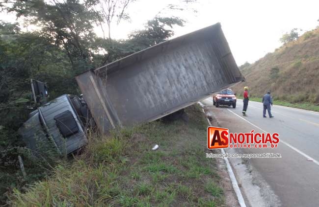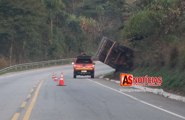 De acordo com as informações os Militares do 6° Pelotão do Corpo de Bombeiros, foram acionados para socorrer um caminhoneiro, que segundo informações teria cochilado na direção, próximo da curva no km 26, onde o veiculo saiu da pista bateu contra a canaleta e tombou as margens da rodovia, por pouco não desceu uma ribanceira. O motorista contou que saiu de Guanhães e seguia com o caminhão Mercedes Benz Atron cor cinza, placa OPX-9476 de Sete Lagoas, com destino a Belo Horizonte quando cochilou e não mais viu nada.