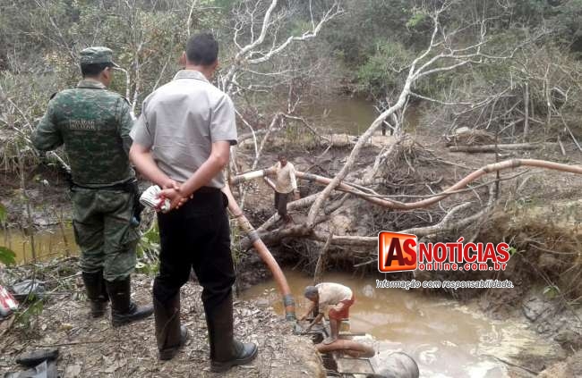 Os Militares apreenderam 13 botijões de gás GLP avaliados e R$ 900,00 reais, uma draga com motor, compressor, bateria, mangotes e outros pequenos equipamentos avaliados em R$ 2.000,00, como o local em que o equipamento estava é terreno de difícil acesso, a draga apreendida e ficou sob a custódia de um dos abordados orientado sobre a necessidade de apresentar os materiais quando requerido pela justiça.