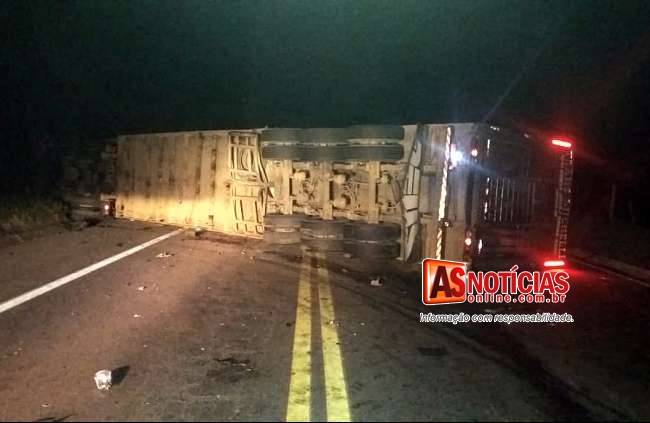 Segundo informações todo gado ficou preso na gaiola da carreta. A pista só foi liberada em um sentido na manha deste domingo (2) por volta de 6h40min, o transito continua lento no local do acidente.