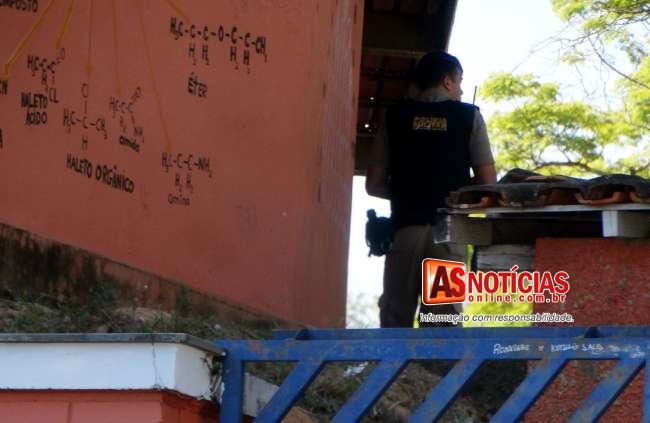 De imediato alguns Militares foram para o local realizar rastreamento no pátio da unidade de ensino, para averiguar a situação, por se tratar de um feriado nacional, não havendo aula e nem funcionários no local. Durante as buscas, já na quadra de esportes, os Militares localizaram dois indivíduos de 18 e 20 anos, ambos abordamos, com um deles foi encontrado um embrulho plástico contendo uma bucha de maconha.