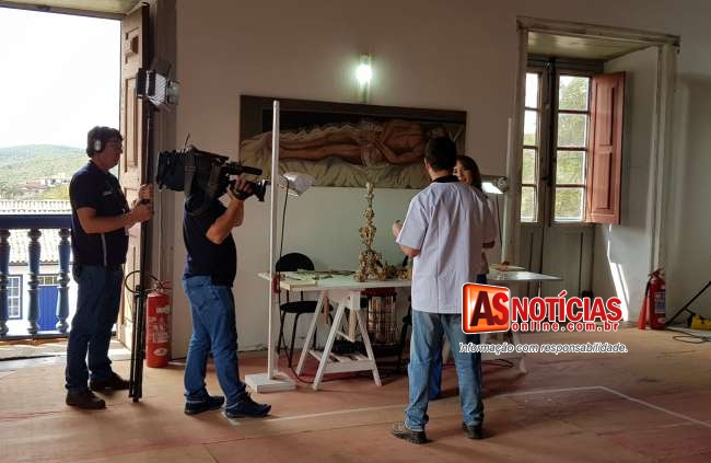 A equipe do programa Terra de Minas, da Rede Globo, esteve em Catas Altas recentemente para filmar o trabalho de restauração de algumas peças do acervo do patrimônio cultural sacro da capela de Santa Quitéria.