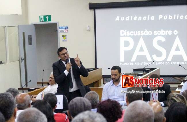 Nesta terça (25) à noite com um plenário lotado e grande maioria de aposentados e pensionistas do Plano PASA, André Viana, vereador presidente da Comissão de Defesa do Consumidor da Câmara Municipal e presidente do Sindicato Metabase dirigiu os trabalhos da audiência pública realizada na Câmara Municipal.
